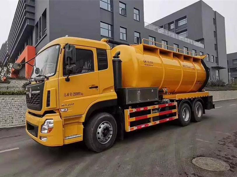 罐體容積22立方左右,清水罐5立方,其余為污水,罐體8mm厚,封頭8mm厚,舉升頂為自卸中置頂,副駕駛一側(cè)清水罐和污水罐用DN100球閥互通,另罐頂裝一個互通,副駕駛一側(cè)按照公告圖片安裝爬梯;清水罐:品浮330高壓泵,罐頂散水罐口一個,帶爬梯,高壓管100米22號高壓管,尾部液壓卷盤,左右各裝一個消防栓進水口,清水罐裝兩側(cè)各一個小球閥,罐底裝一個DN65排水閥,吸污罐:一個散水罐口,罐體內(nèi)部鋪1.2米不銹鋼板,罐內(nèi)爬梯,罐體內(nèi)部防浪板加固,水循環(huán)泵水箱為碳鋼材質(zhì),副駕側(cè)排150鋁合金球閥,吸污罐尾部不開大蓋,開600小蓋排污口,尾部600小蓋左側(cè)一個150排污口,右側(cè)一個100的進料口,一個100鋁合金排污口,側(cè)邊一個100排清水,罐體尾部兩側(cè)工具箱,1根10米吸污管,箭頭燈,手動油門。